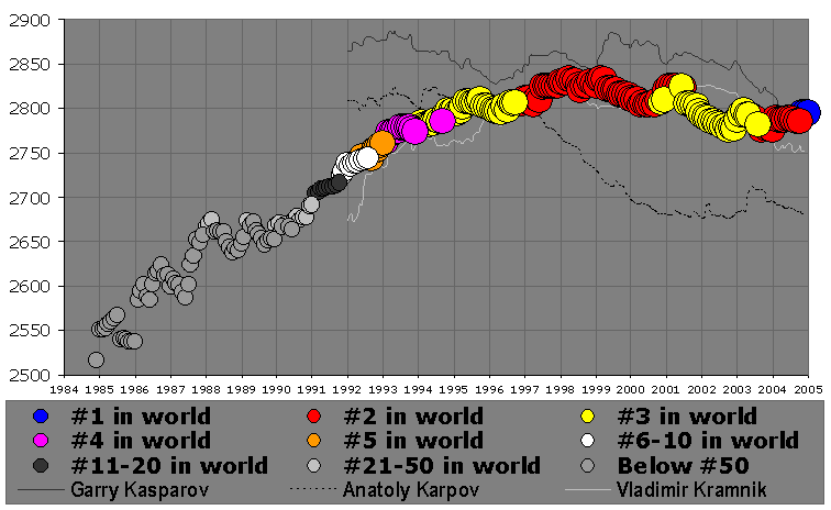 | Best Individual Performance: | 2820 in Frankfurt (Chess Classics), 1997, scoring 7.5/10 (75%) vs 2727-rated opposition |