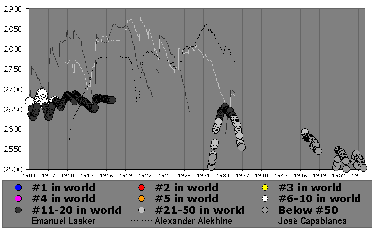 | Best Individual Performance: | 2716 in Ostend, 1907, scoring 13.5/20 (68%) vs 2596-rated opposition |