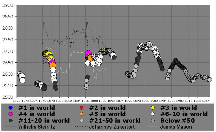| Highest Rating: | 2728 on the October 1900 rating list, #6 in world, age 51y10m |