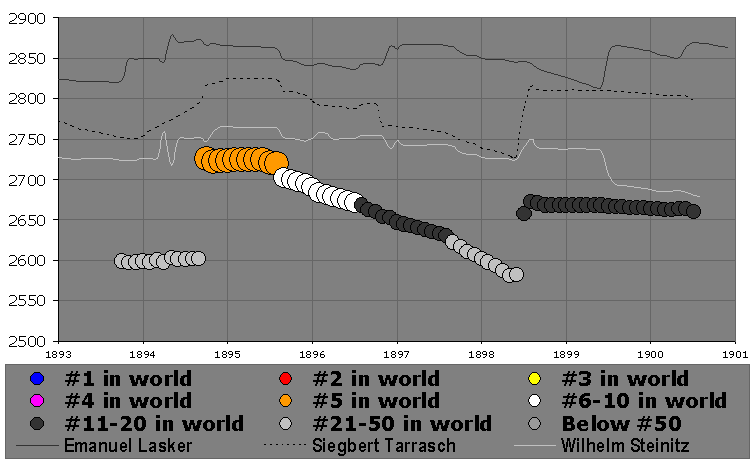 | Best Individual Performance: | 2740 in Leipzig, 1894, scoring 8/11 (73%) vs 2635-rated opposition |