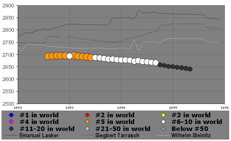 | Best Individual Performance: | 2731 in Dresden, 1892, scoring 8.5/11 (77%) vs 2596-rated opposition |