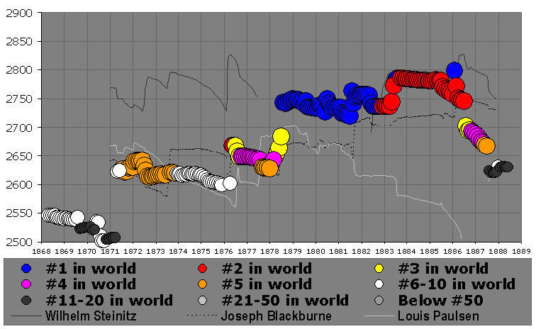 | Highest Rating: | 2798 on the February 1886 rating list, #1 in world, age 43y5m |