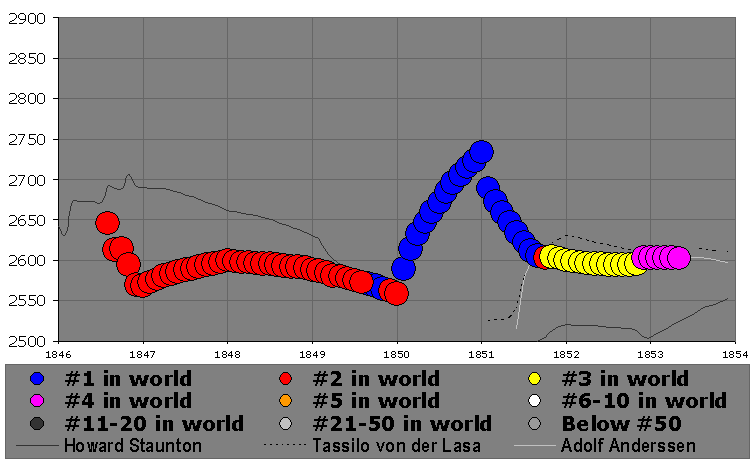 | Highest Rating: | 2734 on the January 1851 rating list, #1 in world, age 45y0m |