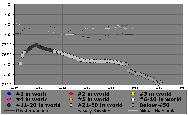 | Best Individual Performance: | 2729 in Moscow (URS Championship), 1950, scoring 10/15 (67%) vs 2635-rated opposition |