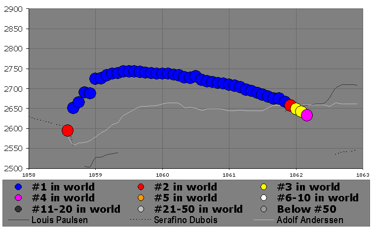 | Best World Rank: | #1 (39 different months between the September 1858 rating list and the November 1861 rating list ) |