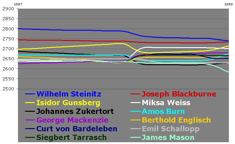 | Wilhelm Steinitz: 2800 (January 1887) |